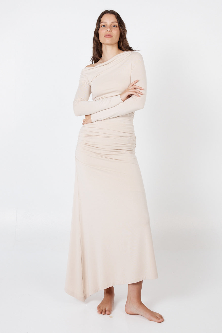 long sleeve cardigan tops and classic long sleeve shirts, each design is intended to keep you comfortable while adding a refined element to your outfit. The graceful flow of the fabric in our collection gives a special testament to our long sleeve tops. If you’re looking for an off-the shoulder, slim-fitting long-sleeve top, our women’s beige draped long sleeve top, makes it the perfect option.
